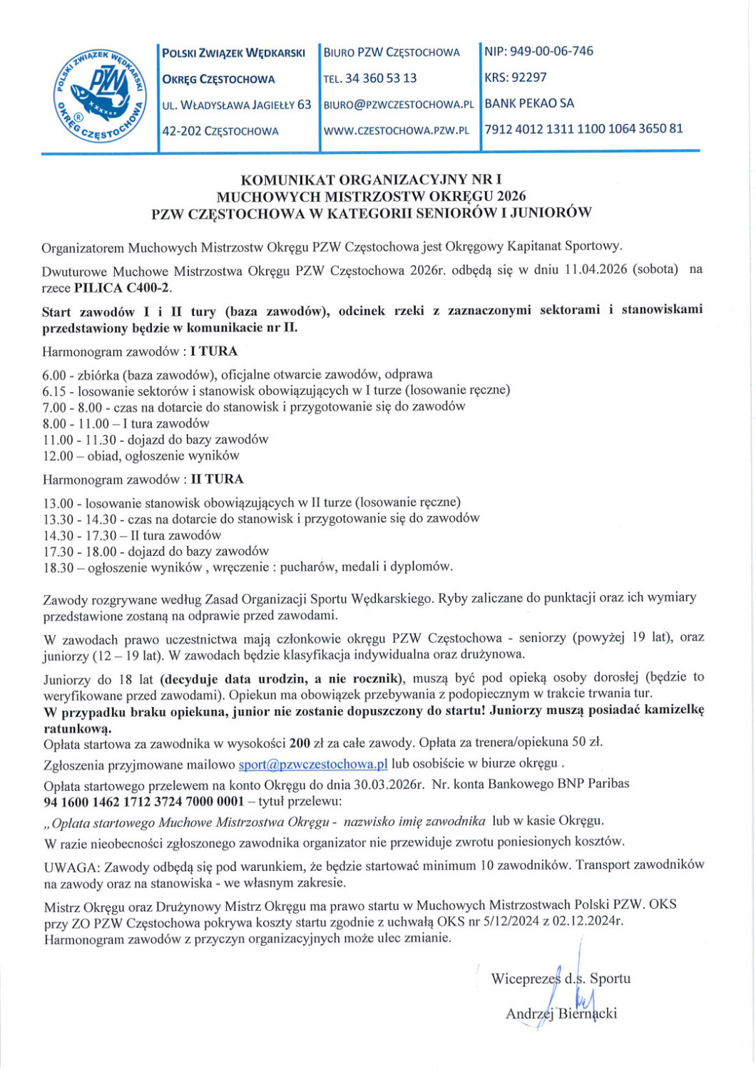 Spławikowe zawody „WIOSNA” 2026 r.